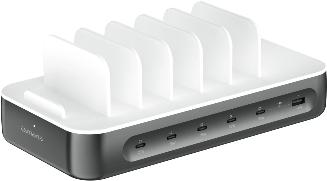 4Smarts Ladestation Team 100W 5C/1A inkl. 6 Kabel Silber