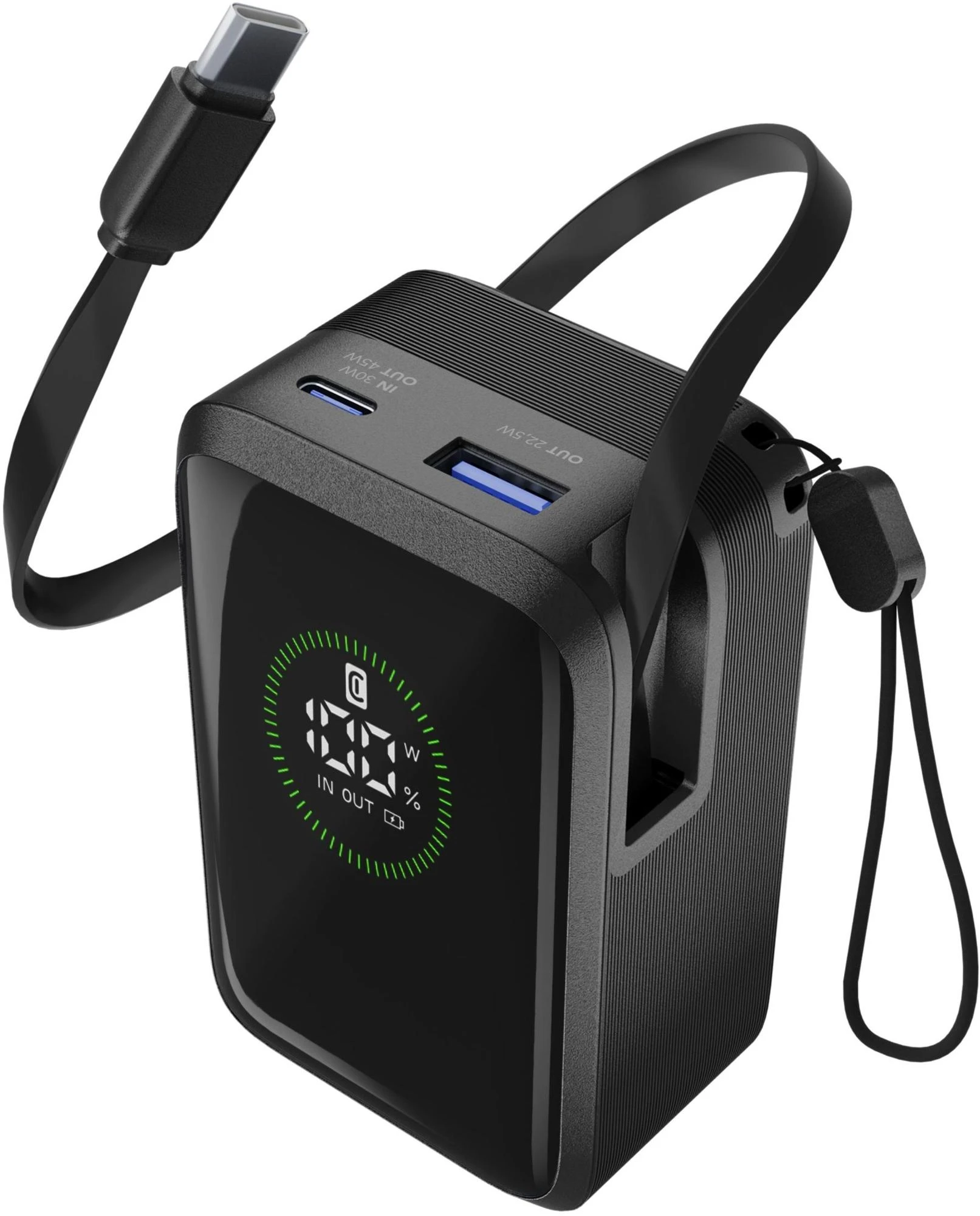 Die Power Bank Roller 10.000 ist die ideale Lösung für alle, die Leistung und Komfort in einem Gerät suchen. Mit einer Kapazität von 10.000 mAh und einer Ausgangsleistung von bis zu 45 W bietet sie bis zu 72 Stunden zusätzliche Akkulaufzeit. Ausgestattet mit einem integrierten, einziehbaren USB-C-Kabel, einem USB-C-Anschluss (30 W Eingang / 45 W Ausgang) und einem USB-A-Anschluss mit bis zu 22,5 W ermöglicht sie das gleichzeitige Laden von bis zu drei Geräten. Das integrierte LCD-Display zeigt Ladestand und Leistung in Echtzeit an. Kompakt und tragbar – perfekt für Smartphones, Tablets und Laptops. Dank des mitgelieferten Tragegurts lässt sie sich bequem überallhin mitnehmen.
